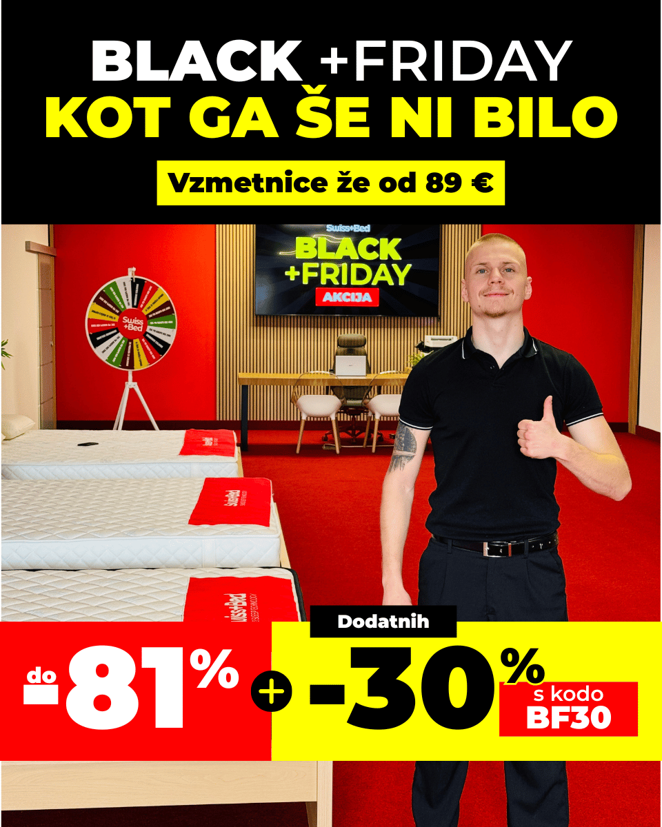 Pomaknite se navzdol po strani in si oglejte izjemno ponudbo naših Swiss+Bed vzmetnic!