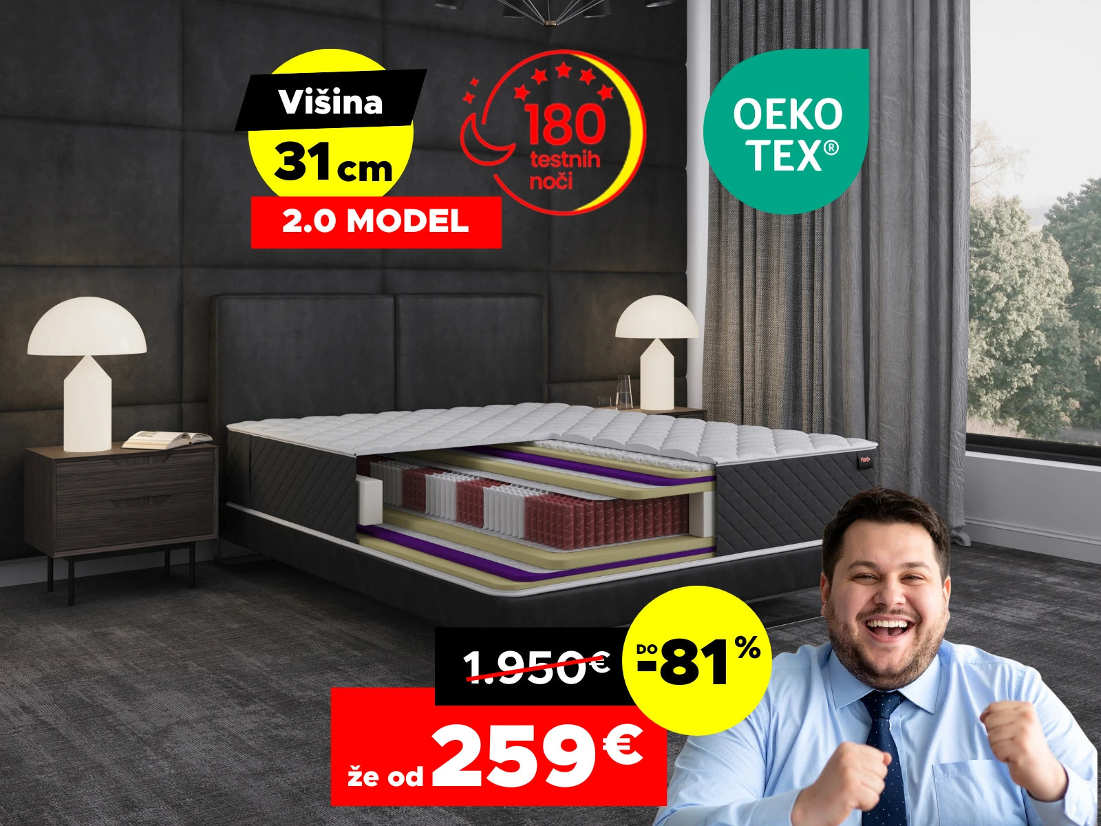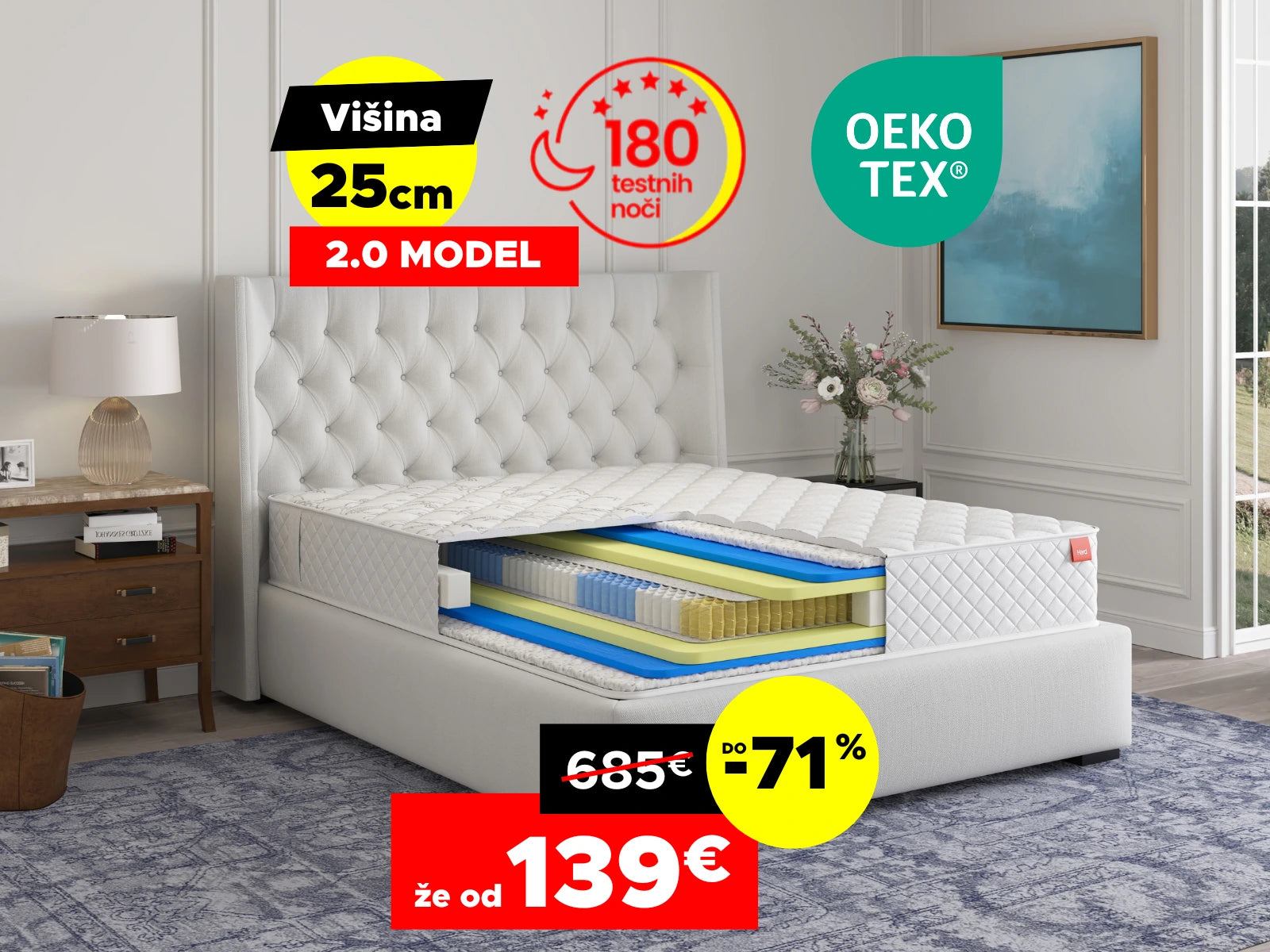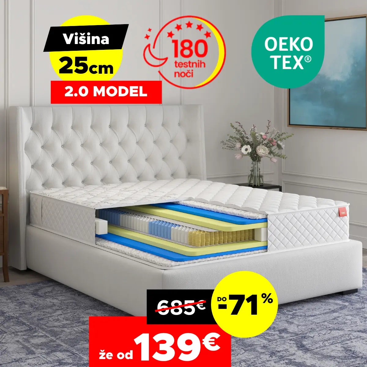 Popolno ravnovesje med luksuzom, udobjem in dostopno ceno – vzmetnica, ki z idealno višino zagotavlja vrhunski spanec vsako noč!