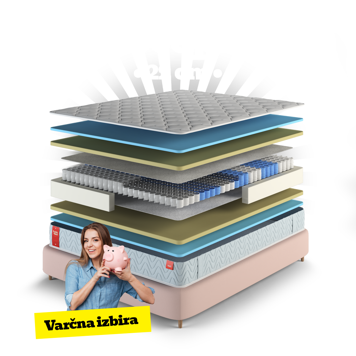 Dodatna nosilna plast pene, ki krepi spodnji del vzmetnice in podpira delovanje vzmetnega jedra. Pomaga ohranjati vzmetnico v idealni formi tudi po dolgih letih uporabe.